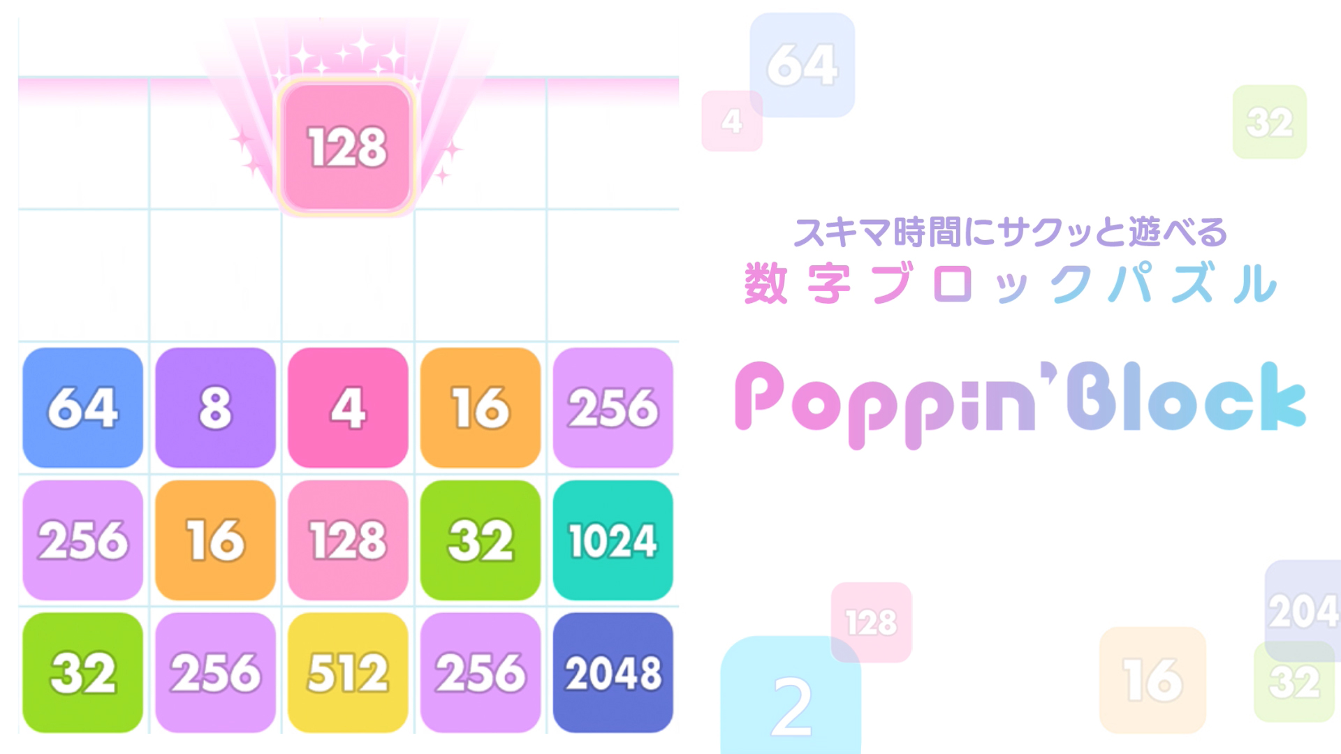 「ポッピンブロック」は、上から落ちてくる数字ブロックをくっつけて高得点を目指す人気パズルゲームです。