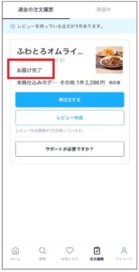アプリを見ると、無事にお届け完了画面が表示されていました。